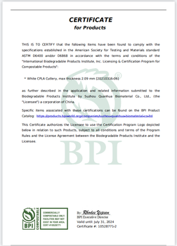 Одноразовые вилочные биоразлагаемые столовые приборы Quanhua, китайский производитель CPLA